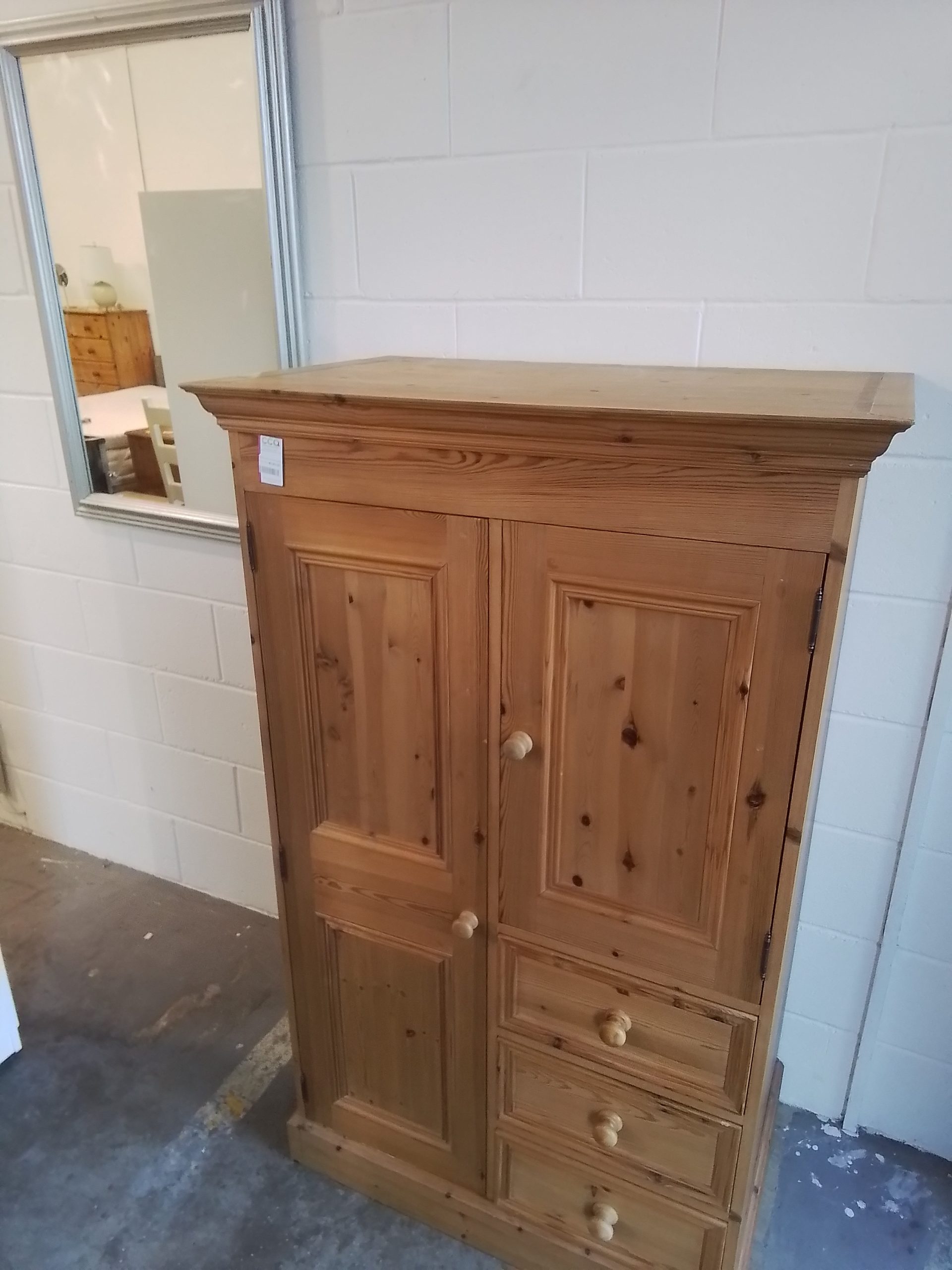 Pine wardrobe with drawers.